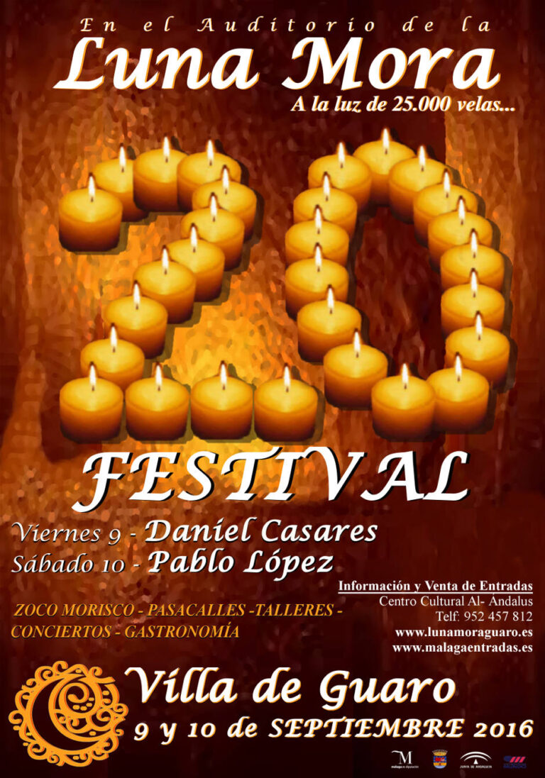 En el XX Festival tendremos las actuaciones en el Auditorio de la Luna Mora, de Daniel Casares el viernes 9 de Septiembre, y de Pablo