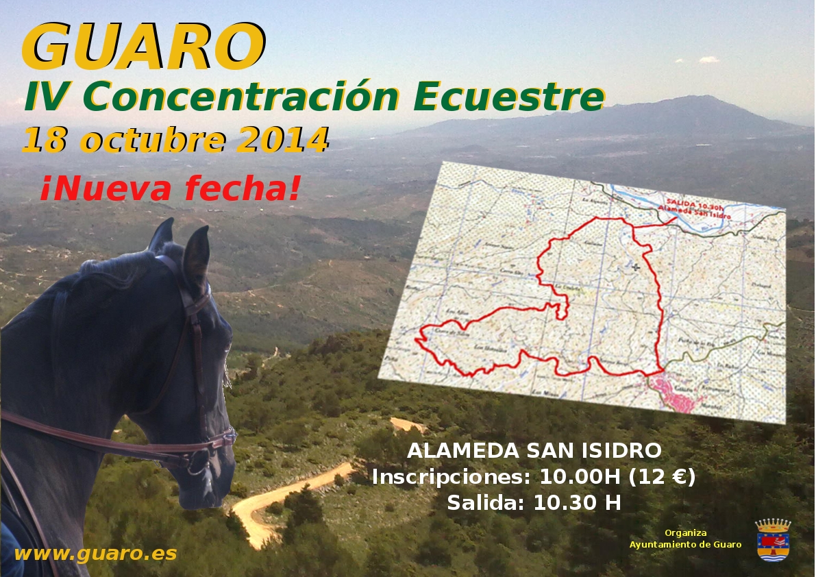 Por motivos meteorológicos, la concentración ecuestre programada para mañana se aplaza hasta el próximo sábado 18 de octubre. ¡Disculpen las molestias! Como cada año se realizará una ruta a caballo con salida desde la Alameda de San Isidro. Las inscripciones son ese mismo día 18 de Octubre, a las 10.00 de la mañana antes de comenzar la ruta. El precio de inscripción son 12 € en los que se incluye una camiseta, el desayuno y la comida del día.