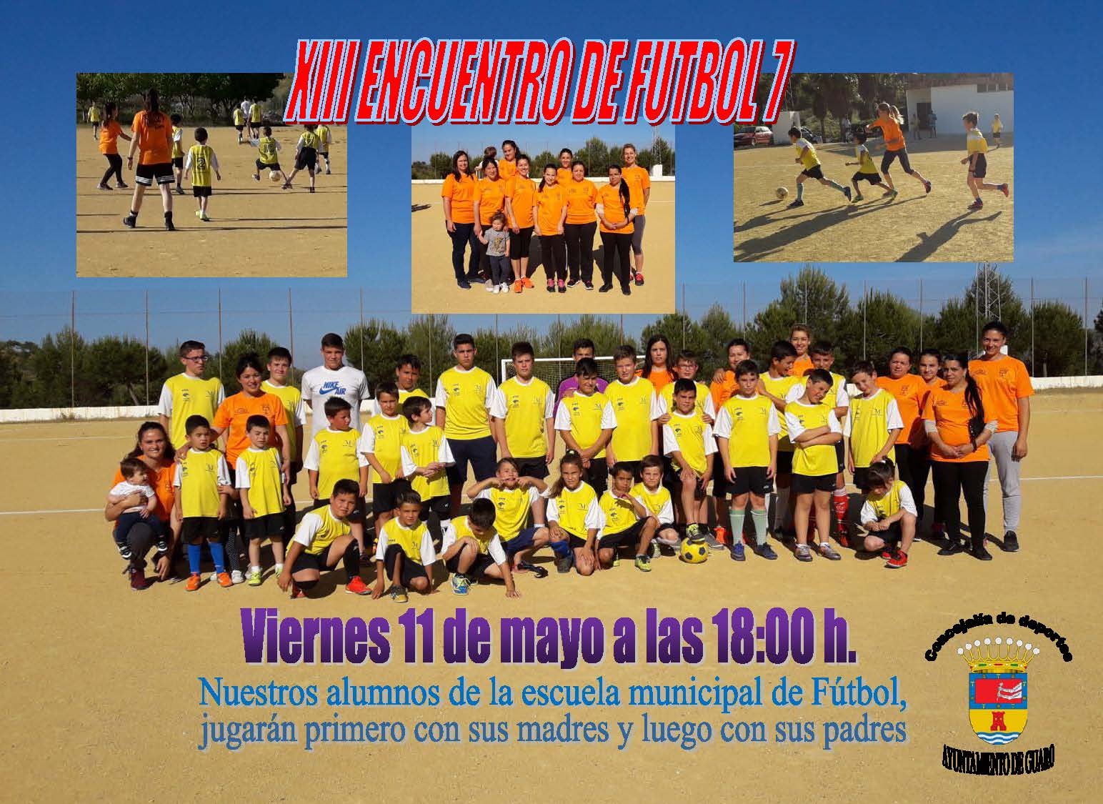 Este viernes 11 de Mayo de 2018 se celebrará a partir de las 18:00 horas, en las instalaciones deportivas El Puerto, el ya tradicional encuentro de Fútbol 7 entre madres y padres contra los alumnos de la escuela deportiva municipal de Guaro. Las madres de las categorías de Iniciación, Prebenjamín y Benjamín jugarán sendos partidos contra los alumnos. Cerrando el encuentro con el partido entre los padres y los alumnos de la categorías Alevín e Infantil